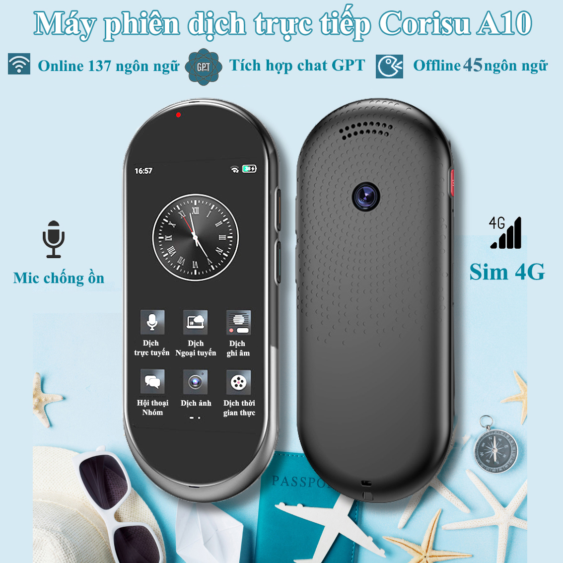 Máy phiên dịch đa ngôn ngữ Corisu A10 tích hợp chat GPT máy phiên dịch hai chiều 138 ngôn ngữ online 37 offline New 2024