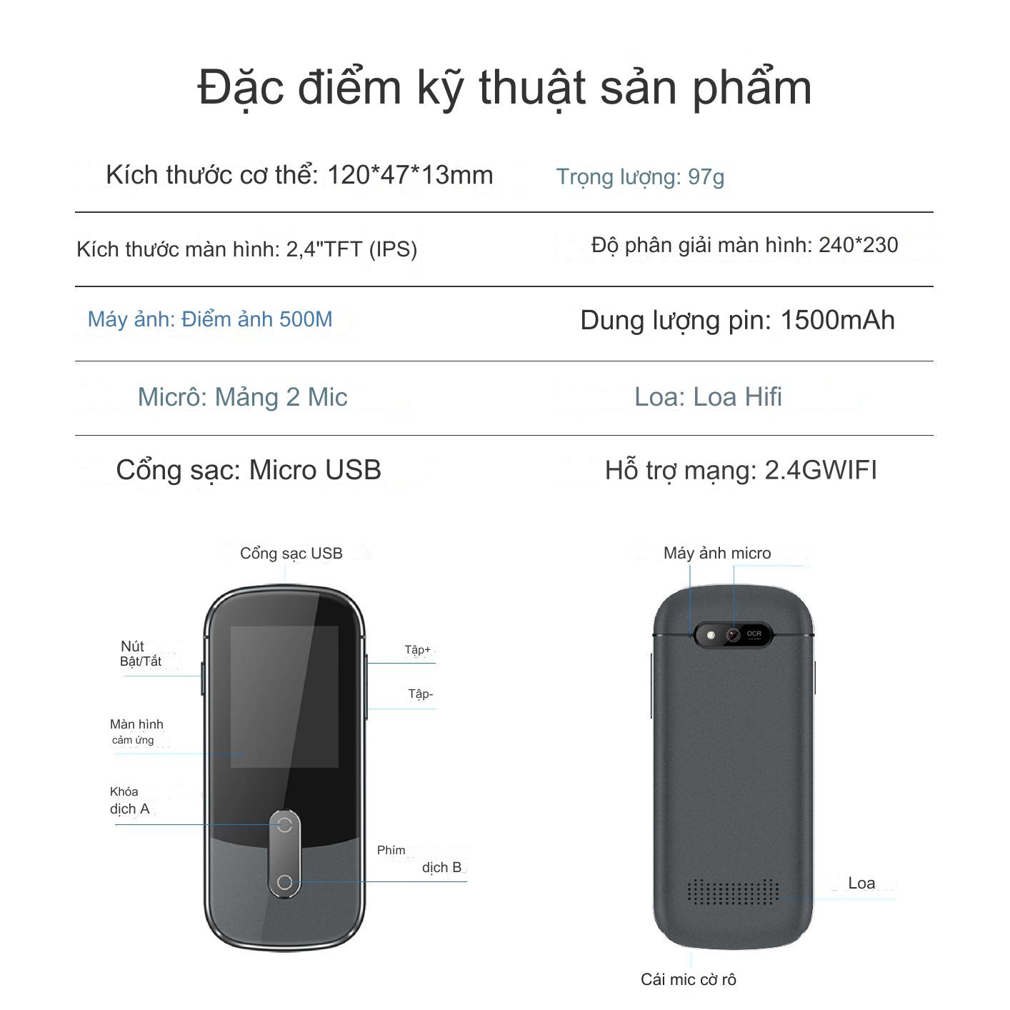 Chức năng: dịch ảnh, ghi âm, kết nối Wifi